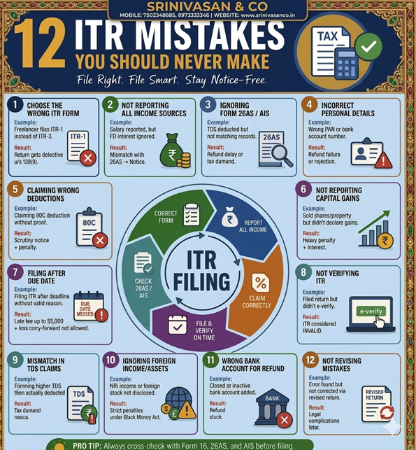 "Srinivasan & Co. transformed the way we handle our finances. From income tax filing to GST registration, everything feels seamless. Their tax advisory services are top-notch, and the support team truly cares about client satisfaction."
